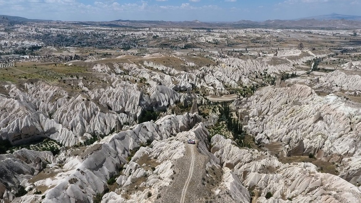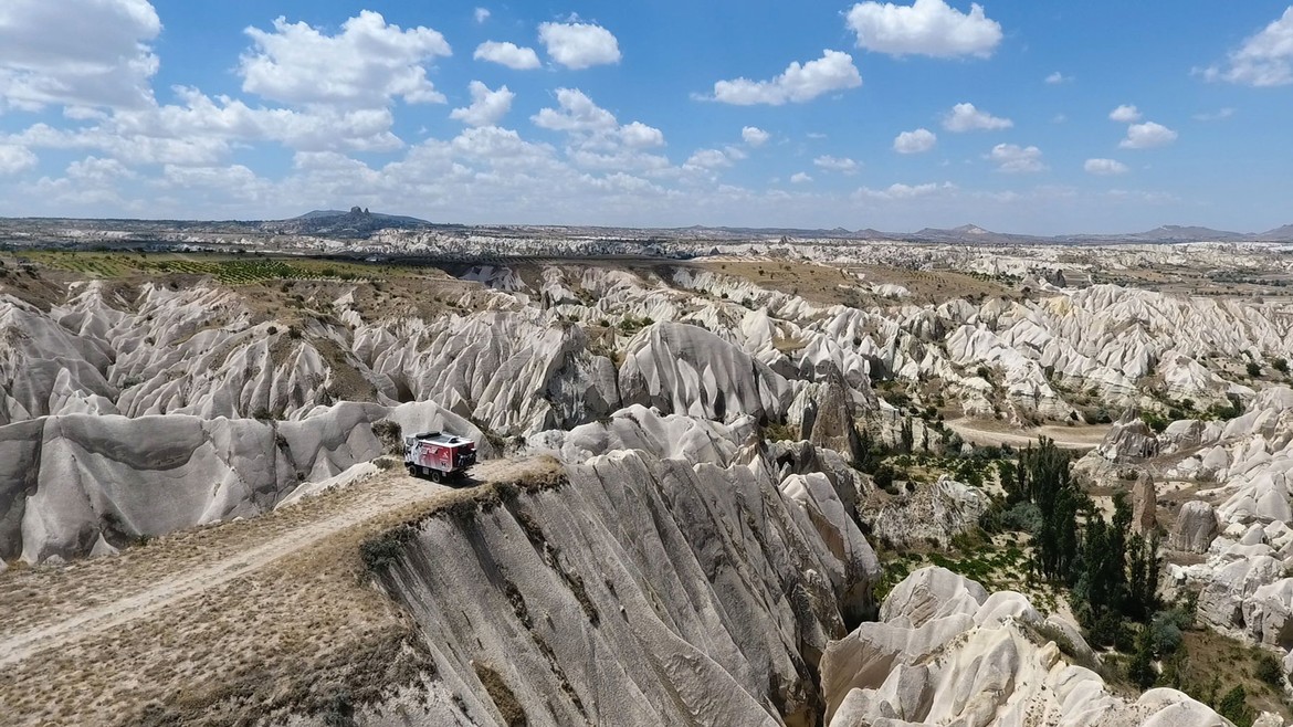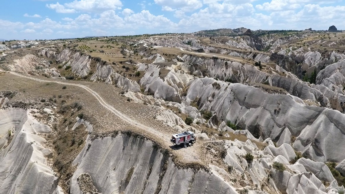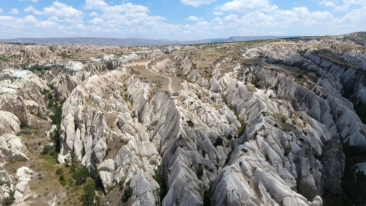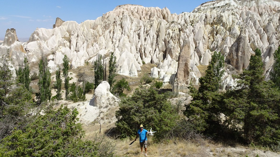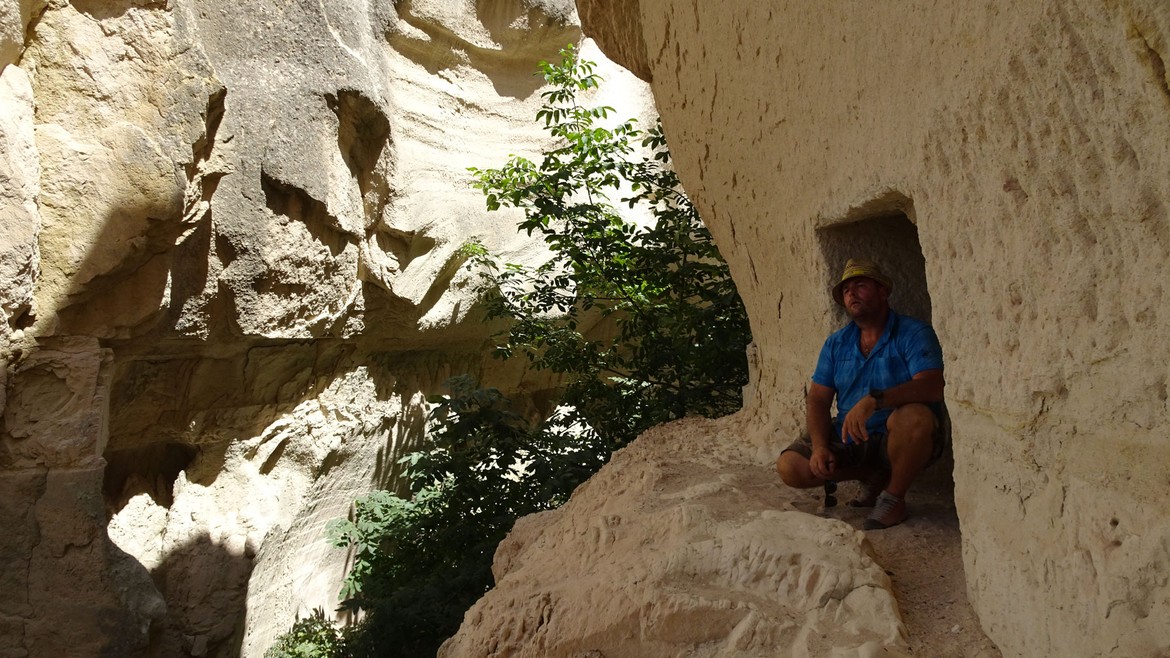 Un peu plus tard dans la matinée, c'est la grosse tuile ! Alors que Mike effectue un vol avec le drone, celui-ci s'écrase au milieu du relief accidenté. Pour notre première journée en Cappadoce, on part donc en expédition "sauvetage" pour essayer de le retrouver. Malgré des recherches infructueuses, des jambes lacérées par les ronces, et quelques sueurs froides, l'aventure nous aura amenée à des endroits que nous n'aurions jamais visités autrement, rapportant quelques clichés authentiques et non conventionnels, dont ceux de ces couloirs troglodytes à flanc de montagne, ou de ces chambres et escaliers creusés dans la roche qui sont dans d'autres circonstances difficilement accessibles ou visitables.