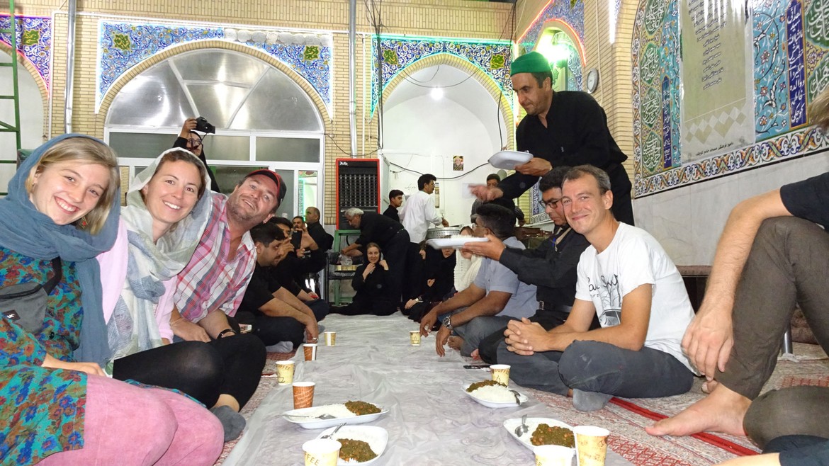 Mais avant de quitter Yazd, et curieux de ce début de commémoration, nous assistons à Meybod aux flagellations rituelles, dans le cadre d’une escapade didactique à l’intention des touristes. Très chorégraphiées et rythmées, elles se font à l’aide de petites chaînes appelées zanjir. En bonus, on nous gratifie d'un tour de la ville et d'un repas gratuit à la mosquée.