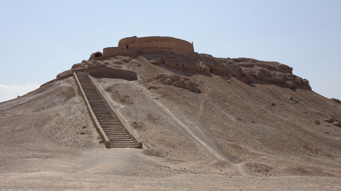 Pour terminer et à ne pas manquer : les tours du silence. Situées à la sortie de la ville, elles étaient utilisées à des fins funéraires. Les cadavres étaient considérés par les Perses comme des objets impurs qu’on ne pouvait mettre en terre, jeter au feu ou à l’eau sans souiller un de ces trois éléments. Les corps étaient exposés dans ces tours pour y être dévorés par les vautours. Les os étaient alors rassemblés dans un ossuaire central.