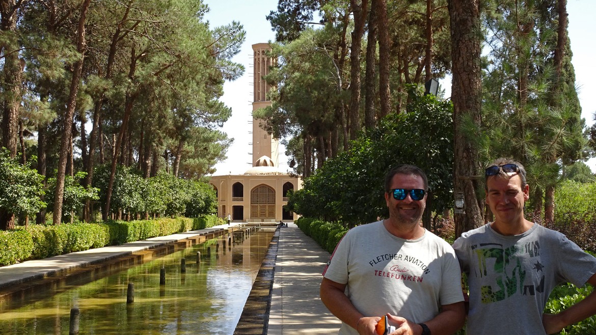 Il y a aussi quelques beaux pièges à touristes comme le temple d'Ateshkadeh, où un feu est maintenu allumé par des prêtres zoroastriens sans interruption depuis 470 av. JC. Jusque-là et sans remettre en question l’histoire de ce feu, tout va bien. Au-delà des croyances, il n’y a aucune mise en valeur de ce fait historique. Le feu n’est visible qu’à l’arrière d’une vitre, laquelle a tellement de reflet qu’il est à peine perceptible. La vitre en question se trouve dans un bâtiment dont seule une pièce est accessible et est protégée par une balustrade qui empêche toute approche à moins d’un mètre. Toutes les informations affichées dans la pièce sont en perse. Mais à 150’000 rials/personne l’entrée (environ CHF 1.20), nous ne leur en tiendrons pas trop rigueur ! Ils seront d’ailleurs rentabilisés par la visite surprise d’un réservoir d’eau à vingt mètres de là, au sous-sol d’un second bâtiment situé dans l’enceinte du jardin du temple du feu.