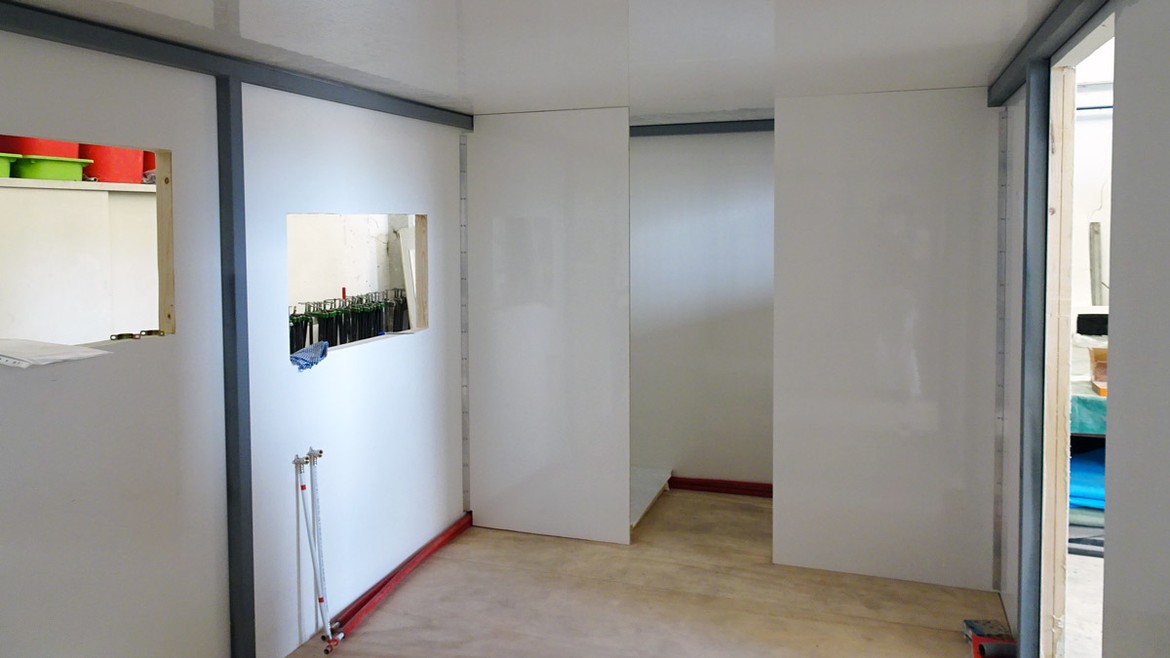Dessinée de A à Z par nos soins, elle présente un premier espace lumineux composé du lit, de la table et de la banquette, ainsi que de la cuisine. Un second espace clôt l’ensemble avec le wc et la douche.